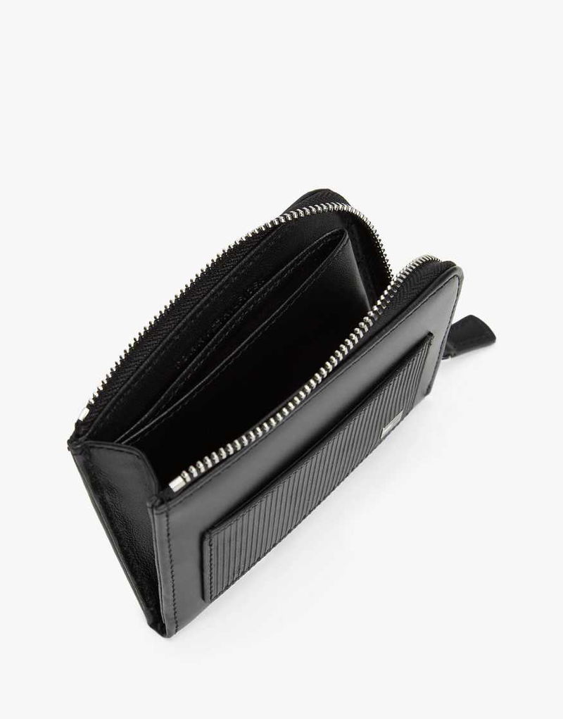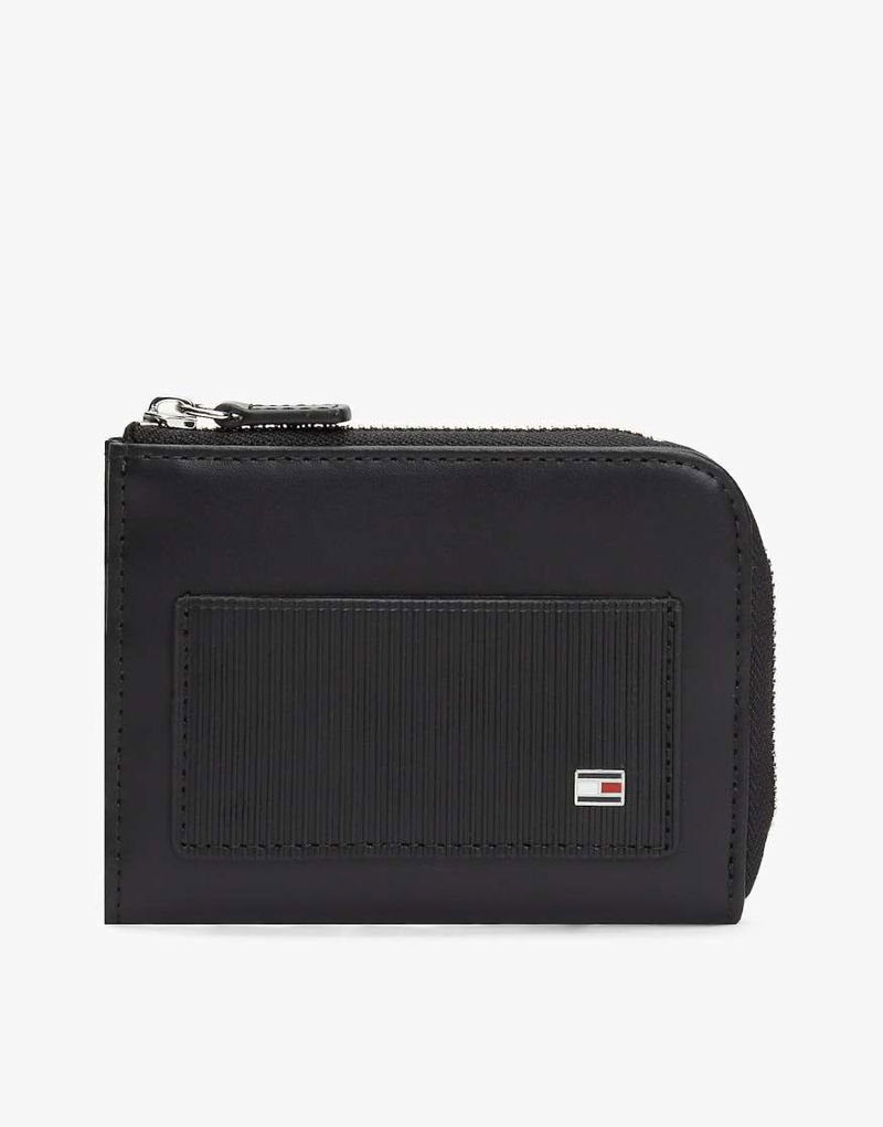 Hilfiger Flag Ribbed Leather Zip-around Wallet In Black