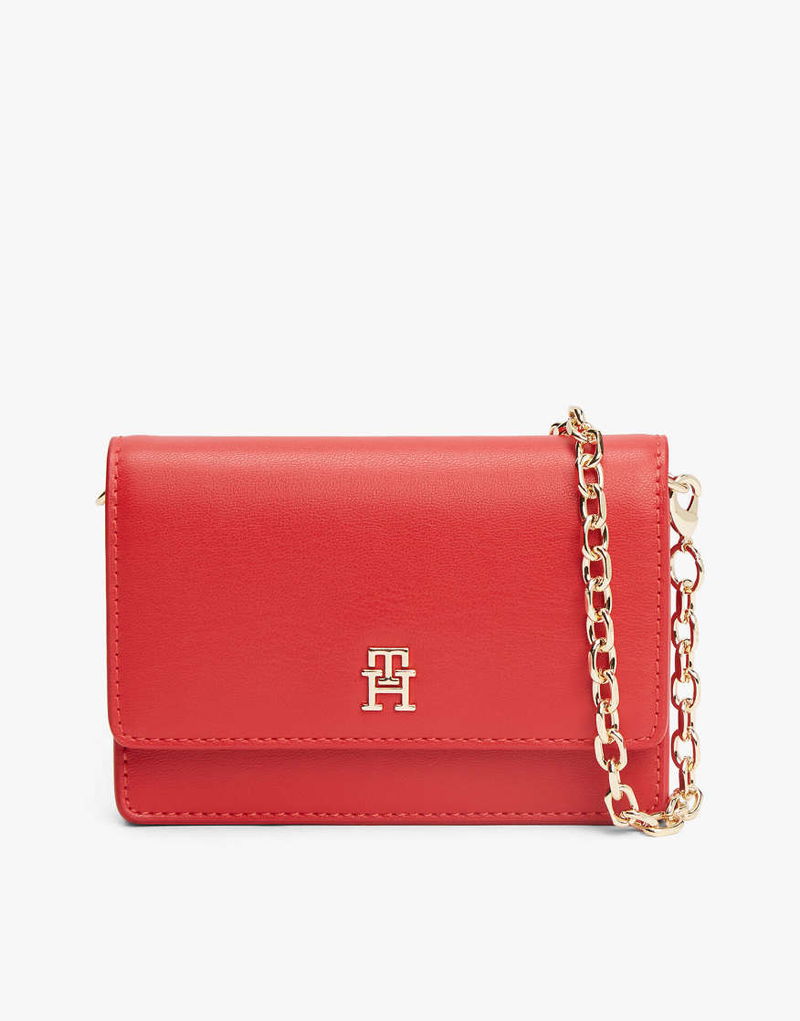Hilfiger Icon Card Wallet With Chain In Red Orange