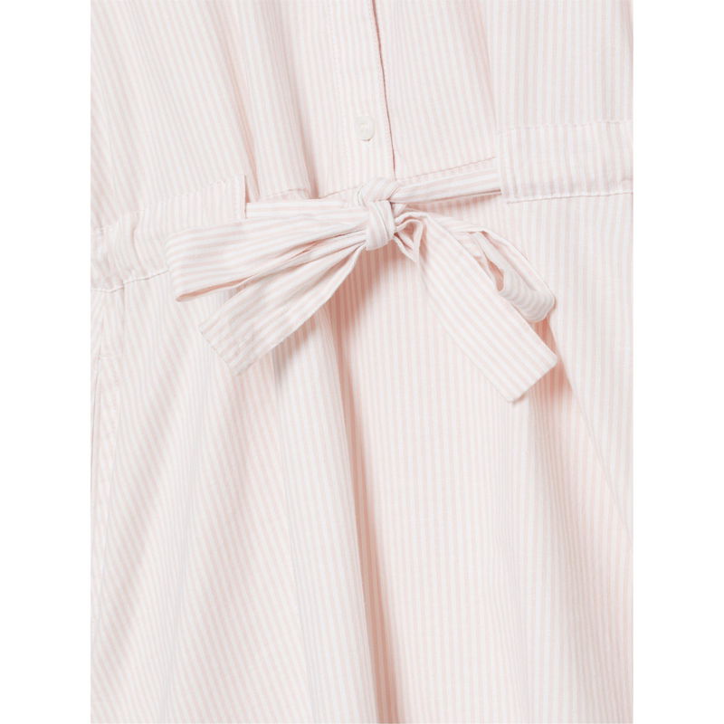 Furthermore its designed with a relaxed fit and mini length, exuding cute playfulness alongside breathability. The spread collar with a button-up front adds a touch of polished refinement, while the self-tie belt allows for a more adjustable fit.