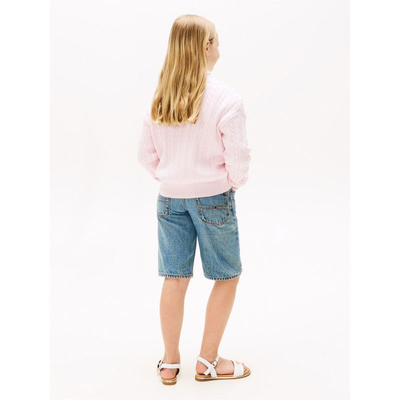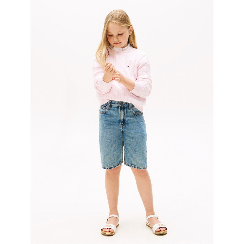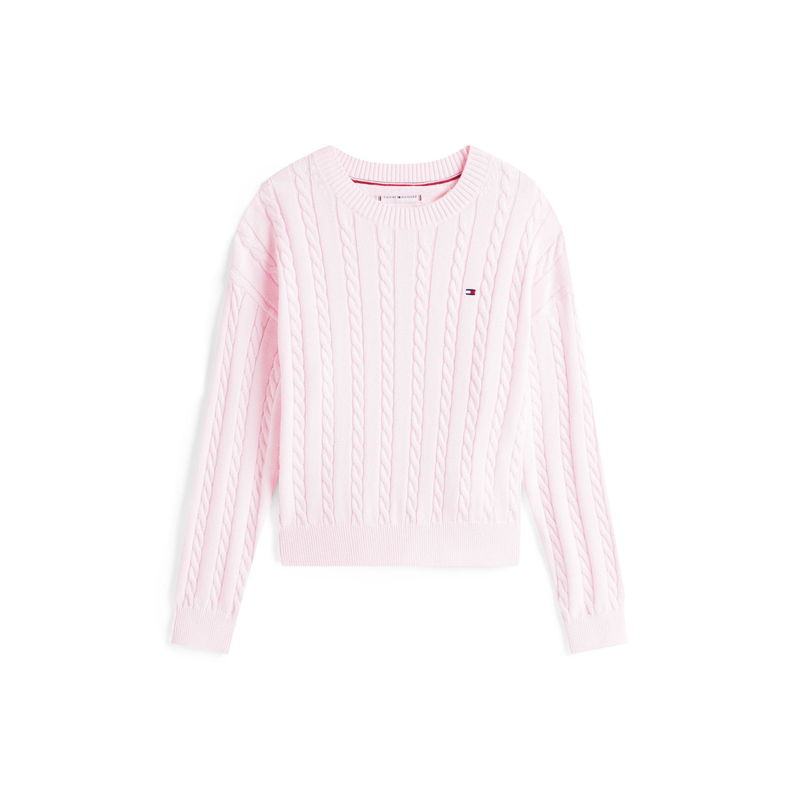 The Kids' Cable Knit Crew-Neck Jumper from Tommy Hilfiger delivers classic style with textured cable detailing and a comfortable fit for everyday wear. This children's jumper showcases quality knitwear and an enduring design.