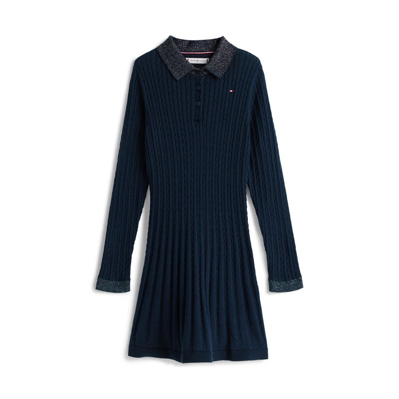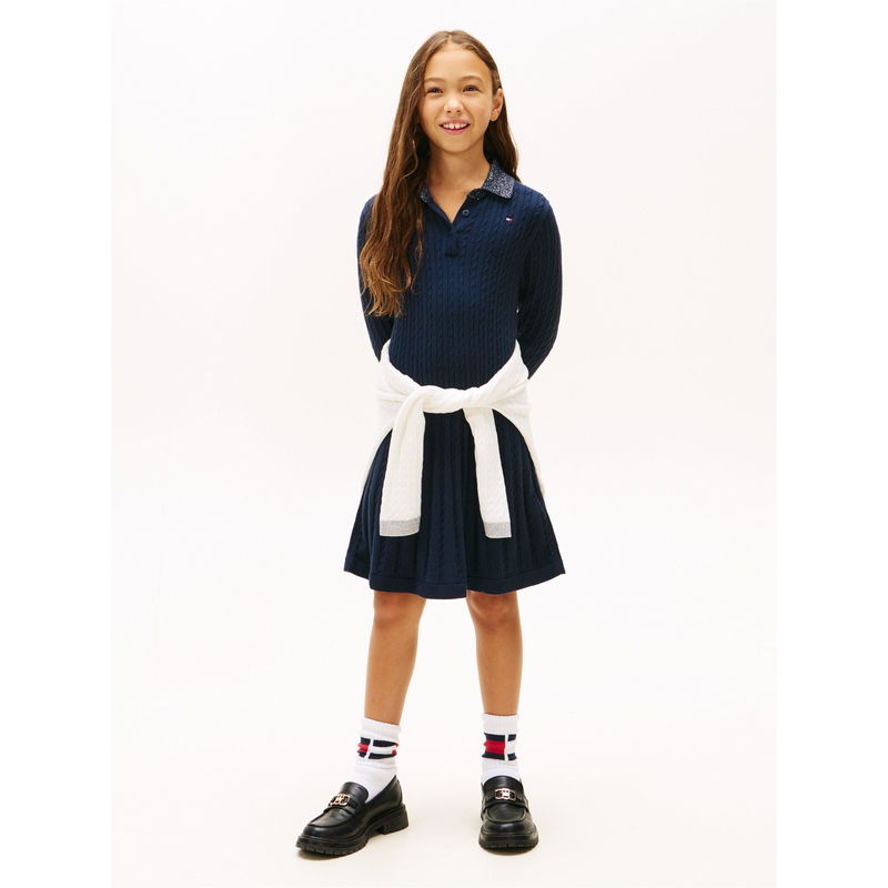 Designed with a classic knit texture, the Tommy Hilfiger Kids' Cable Jumper Jumper Dress brings structure and ease to everyday dressing.