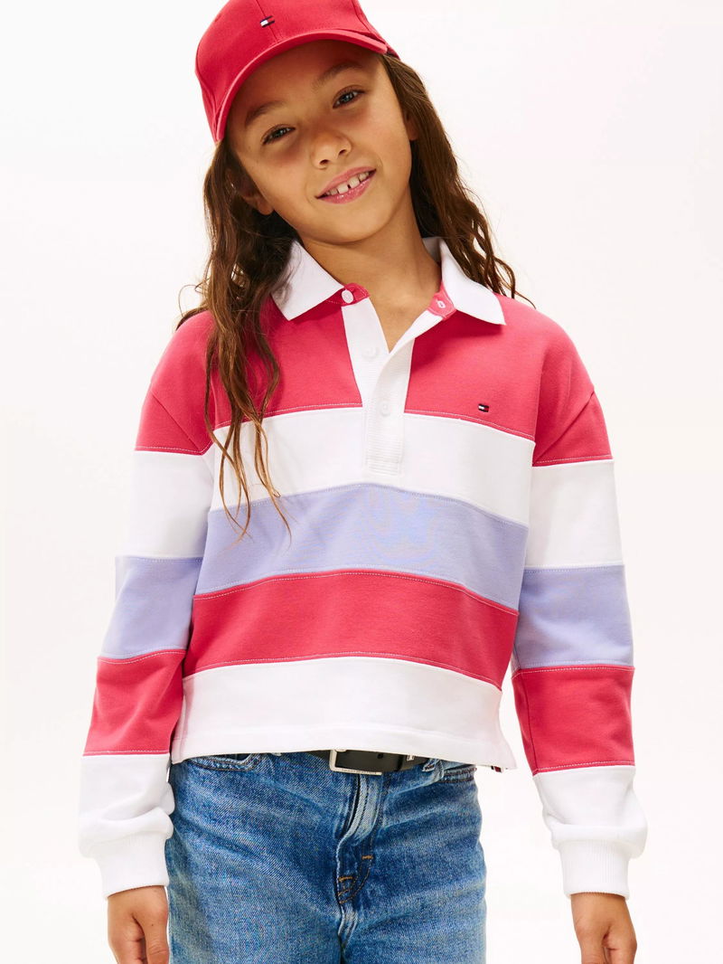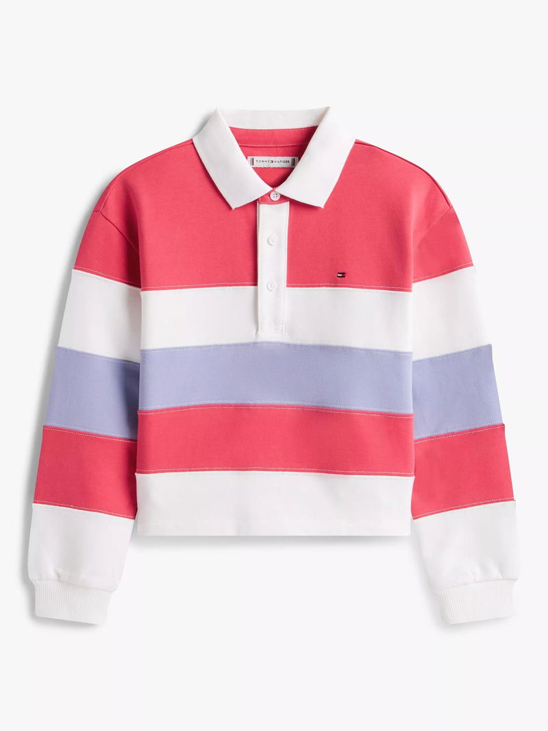 Kids' Colourblock Long Sleeve Polo Shirt, Vintage Cerise/Multi