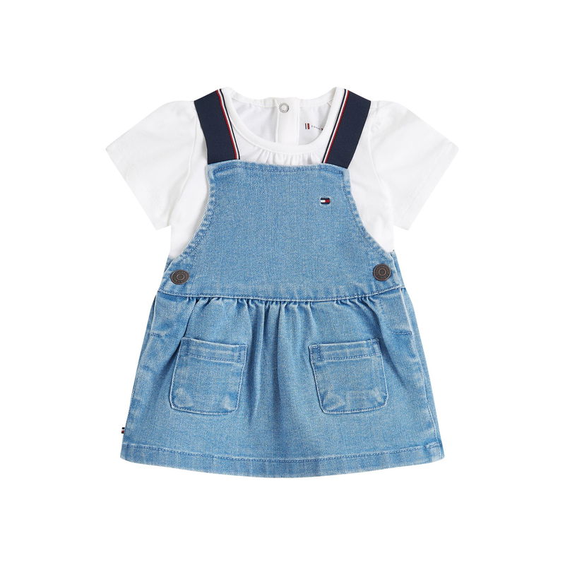 Classic American styling defines the Tommy Hilfiger Kids' Denim Dungaree Dress, with adjustable straps and branding for a playful yet practical everyday piece.