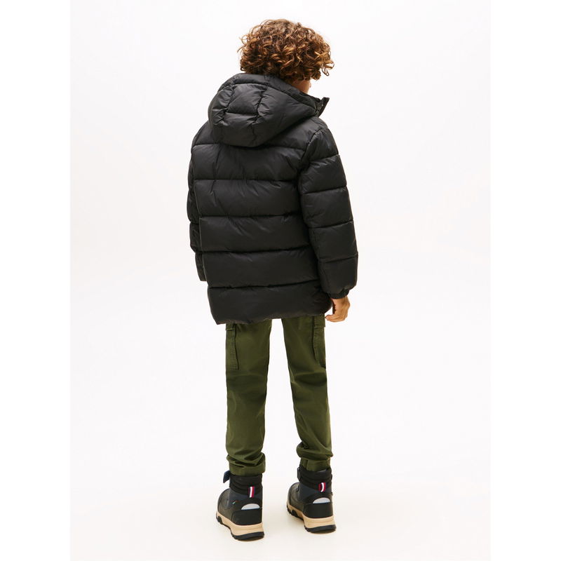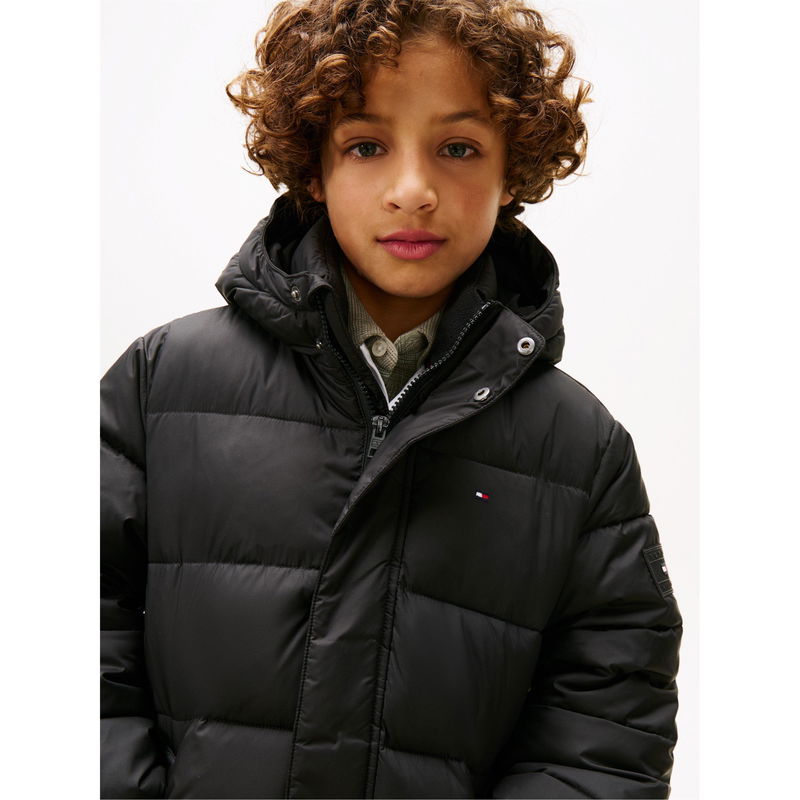 Tommy Hilfiger's Essential Padded Parka delivers protection for active kids. This medium puffer coat offers practical warmth and style, featuring a protective stand collar and convenient zip fastening. The regular fit allows for wearing over other clothes during transitional seasons, while the insulated design keeps youth comfortable in various weather conditions.