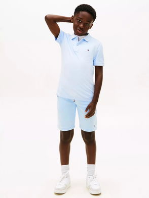 Tommy Hilfiger's Kids' FLAG Short-Sleeve T-Shirt features the flag motif representing American heritage designed for everyday youth styling. The flag emblem stands out on this t-shirt, suitable for daily styling.