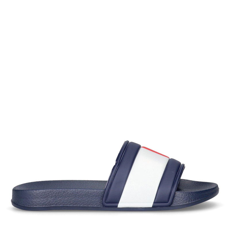 Tommy Hilfiger Kids' Flag Sliders offer casual comfort and branding for youth and children. The streamlined shoe features the flag motif, ideal for poolside wear or summer adventures.