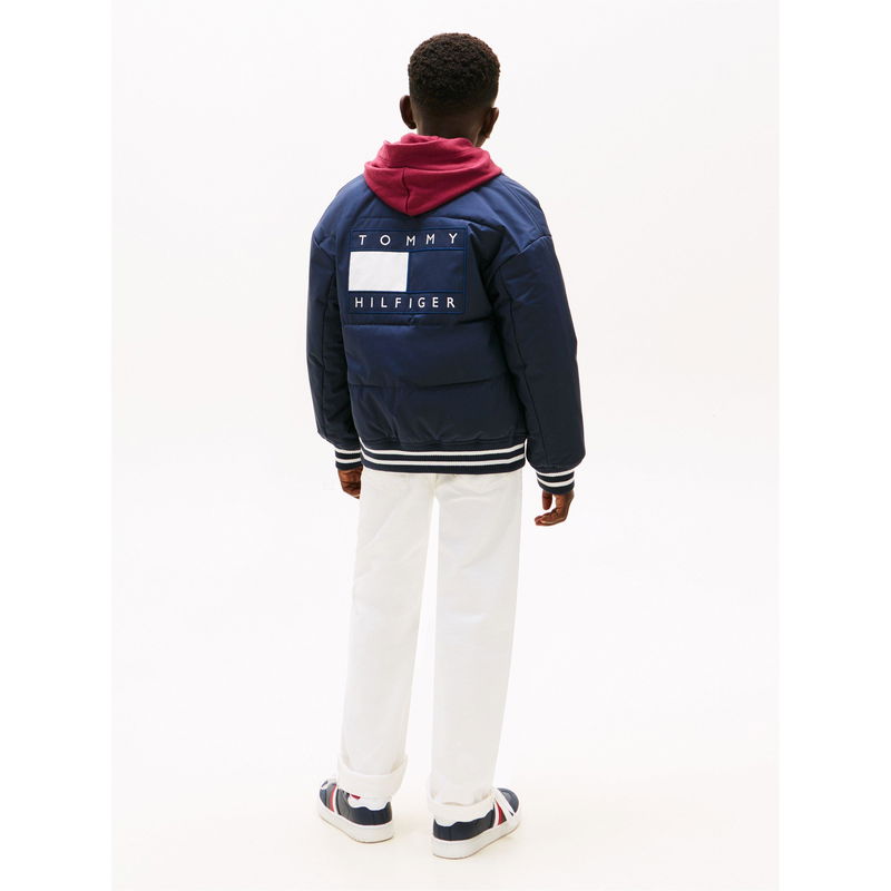 The Tommy Hilfiger Kids' Graphic Bomber Jacket brings bomber styling with a streamlined profile. Built for everyday wear, it maintains clean lines without added weight.