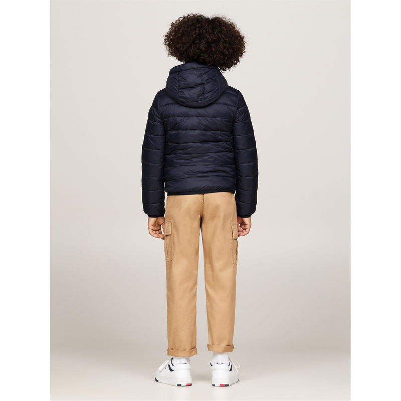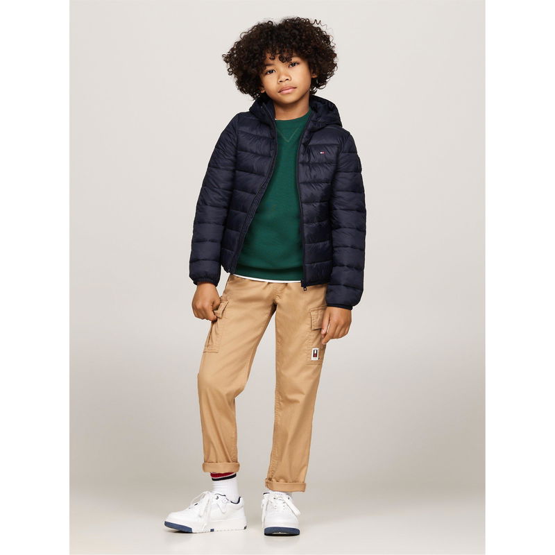 Tommy Hilfiger's Kids' Hooded Short Puffer Jacket delivers essential winter warmth in a modern shape for youth. This children's outerwear piece features a regular-fit design with practical zip fastening and two handy pockets, while insulation ensures lightweight protection against cold weather, making it an ideal coat for active kids.