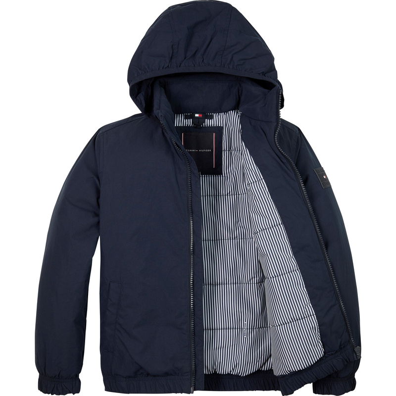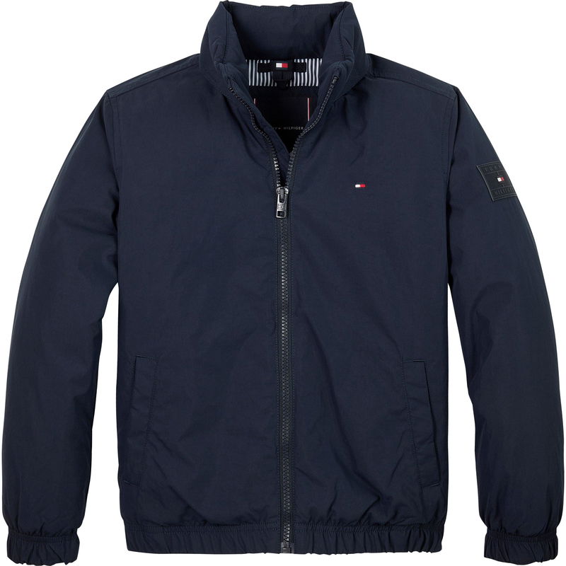Tommy Hilfiger's Kids' Logo Patch Long Sleeve Windbreaker delivers classic style for cooler days. This hip-length children's jacket features a stand collar, zip fastening, and embroidered flag logos on the chest and sleeve, giving your youngster that classic Tommy look while providing practical protection.