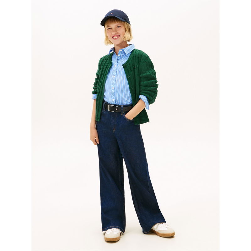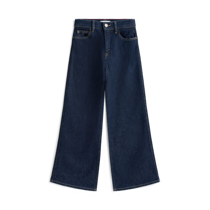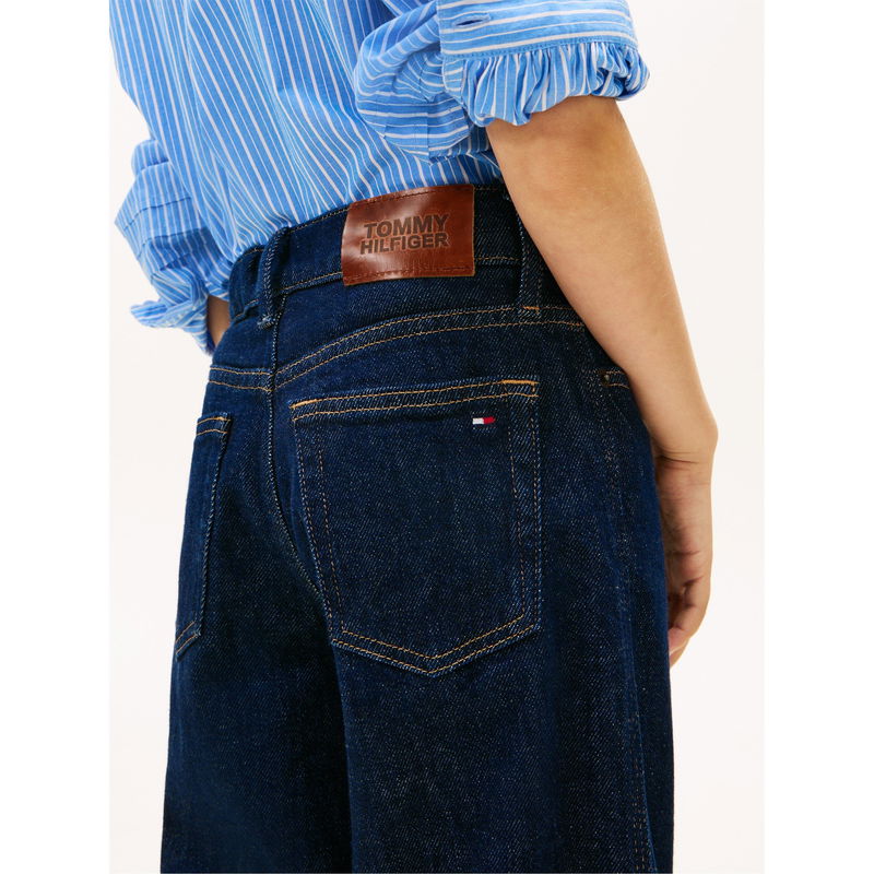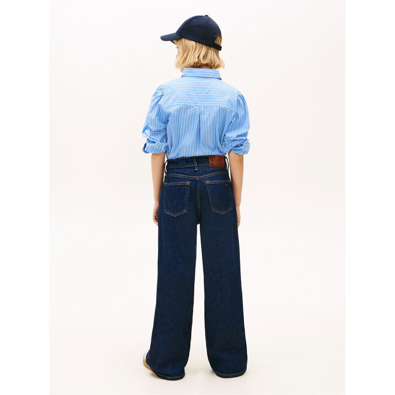The Tommy Hilfiger Kids' Mabel Wide Leg Jeans feature a streamlined cut that allows freedom of movement throughout the day.