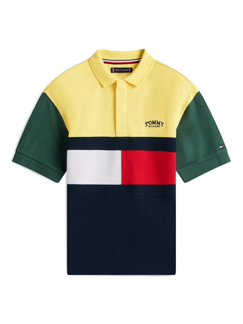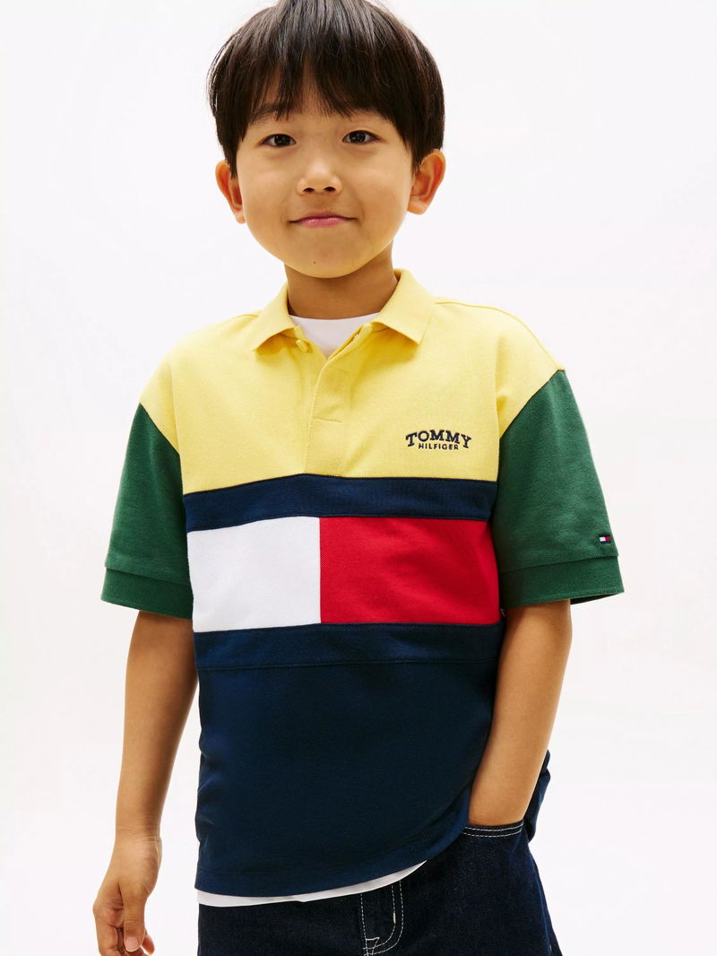 Kids' Monotype Logo Colour Block Cotton Short Sleeve Polo Shirt, Multi