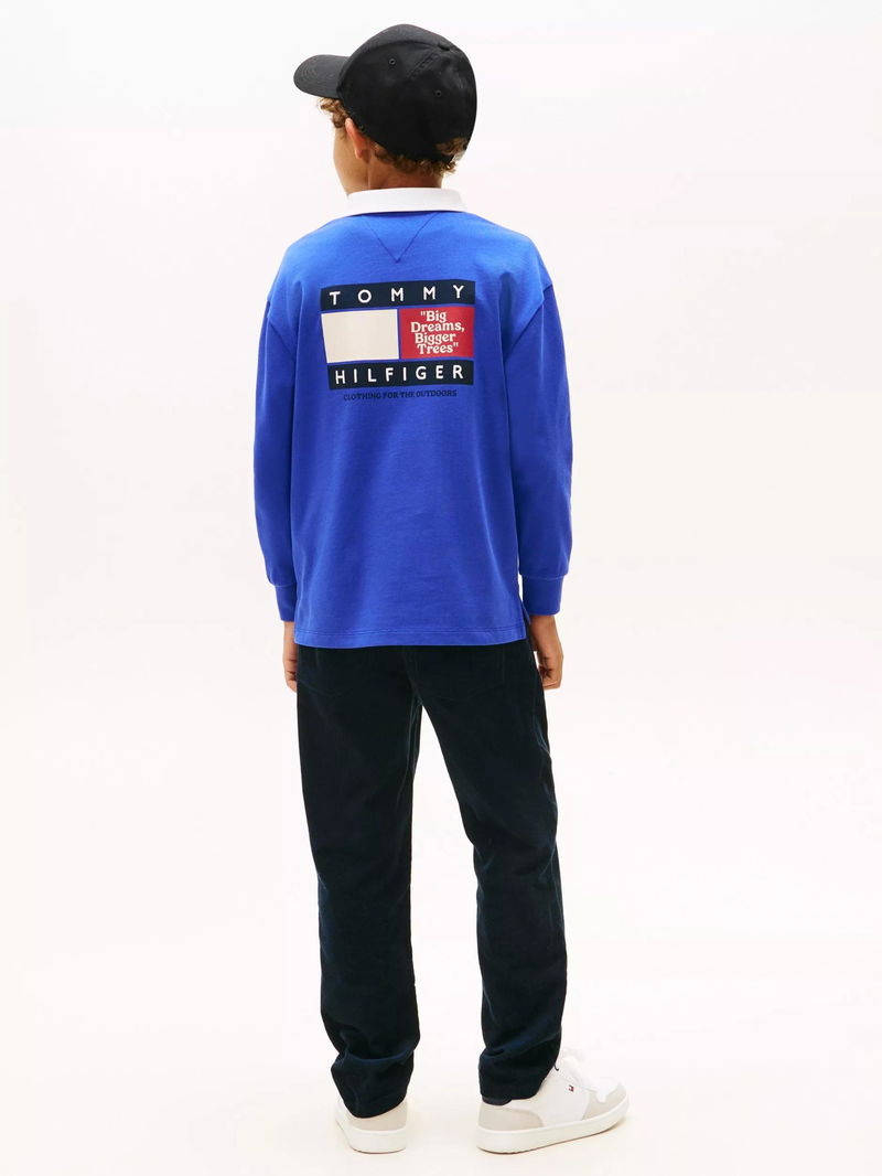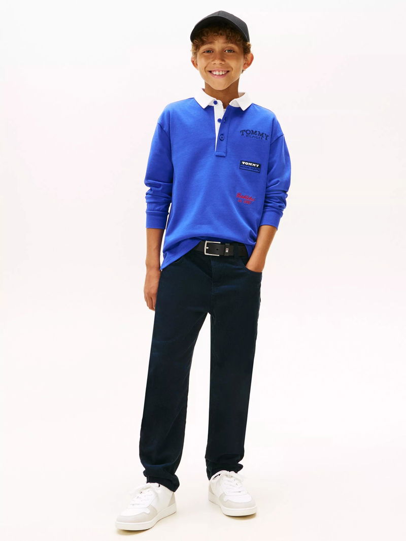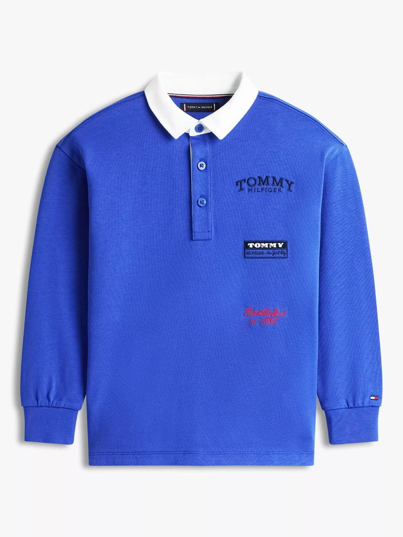 Kids' Pure Cotton Long Sleeved Polo Shirt, Majesty Blue