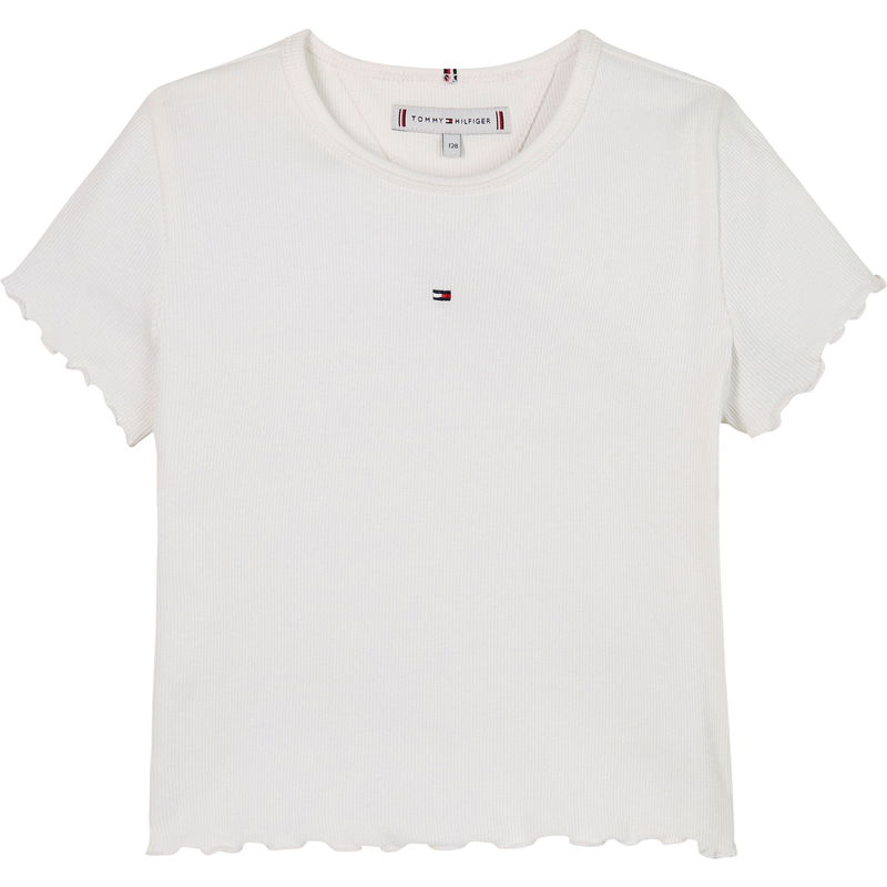 The Kids' Regular Fit Ribbed T-Shirt from Tommy Hilfiger features textured fabric with a classic shape. Structured ribbing adds texture to the clean design, maintaining the T-shirt's everyday wearability.
