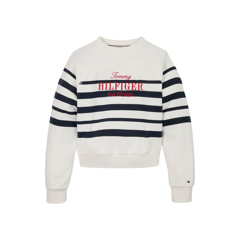 The Kids' Script Cotton Crew Sweatshirt from Tommy Hilfiger embodies classic American style, featuring branding designed specifically for youth. With its relaxed fit and thoughtfully designed ribbed trims, this crew-neck piece delivers both comfort and secure styling.