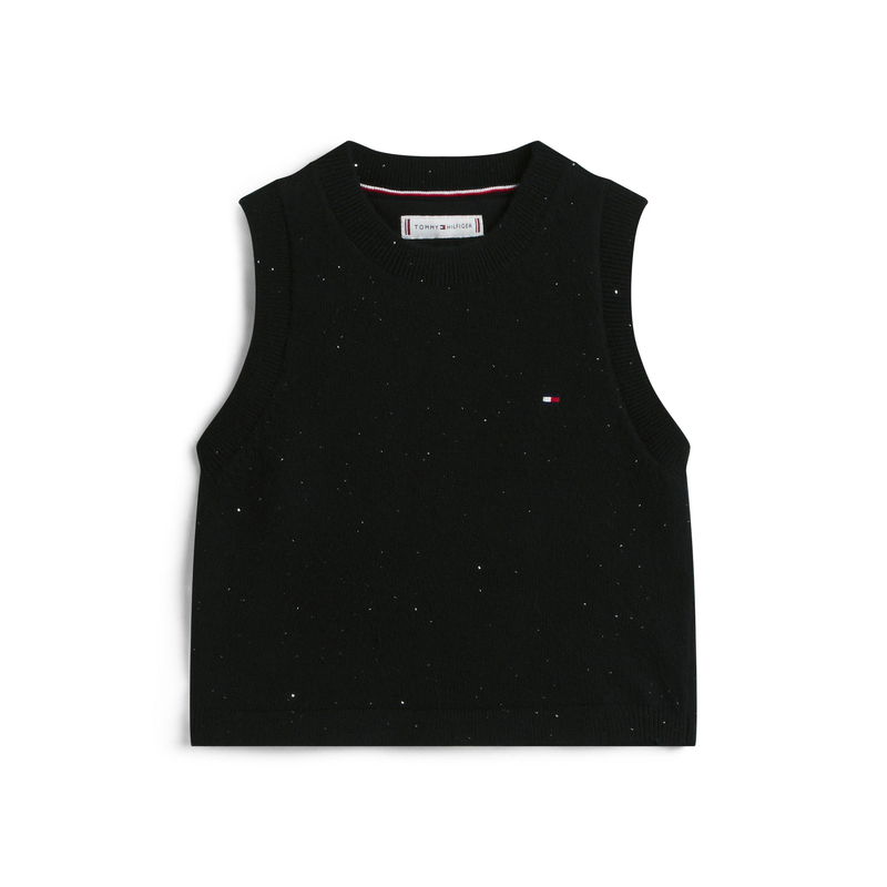 Tommy Hilfiger's Children's Sequin Knitted Top features sequin detailing on a soft knitted fabric, delivering both visual appeal and comfort for fashionable young ones.