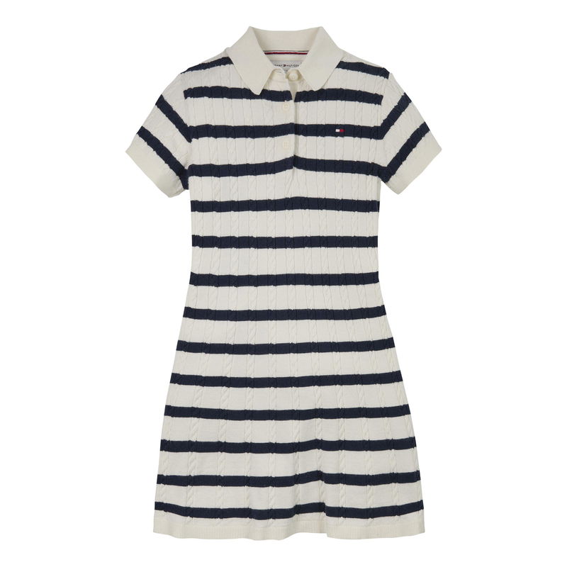 Tommy Hilfiger's Kids' Short-Sleeve Polo Dress features classic American styling with a smart look for everyday wear. Structured with a defined collar and precise lines, embodying the brand's hallmark aesthetic.