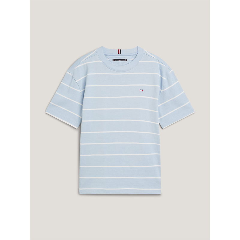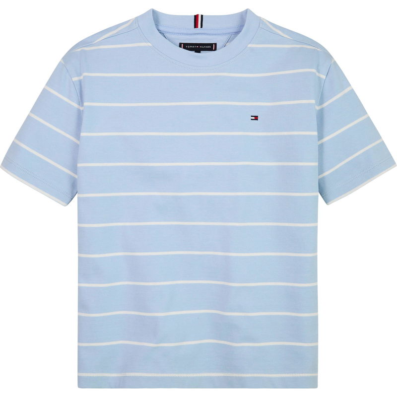 Bold stripes meet classic comfort in Tommy Hilfiger's Kids' Striped Logo Regular Fit T-Shirt. The relaxed shape features branding across the chest, offering everyday style with American heritage.
