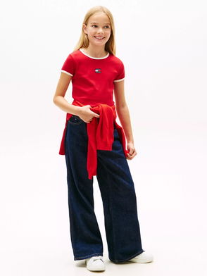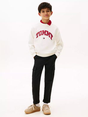 Description: Upgrade your basics with this short-sleeved T-shirt from Tommy Hilfiger. Made of soft and breathable cotton with an arched varsity-style logo on the front. Materials: 100% Regenerative Cotton Product Code: 113144261
