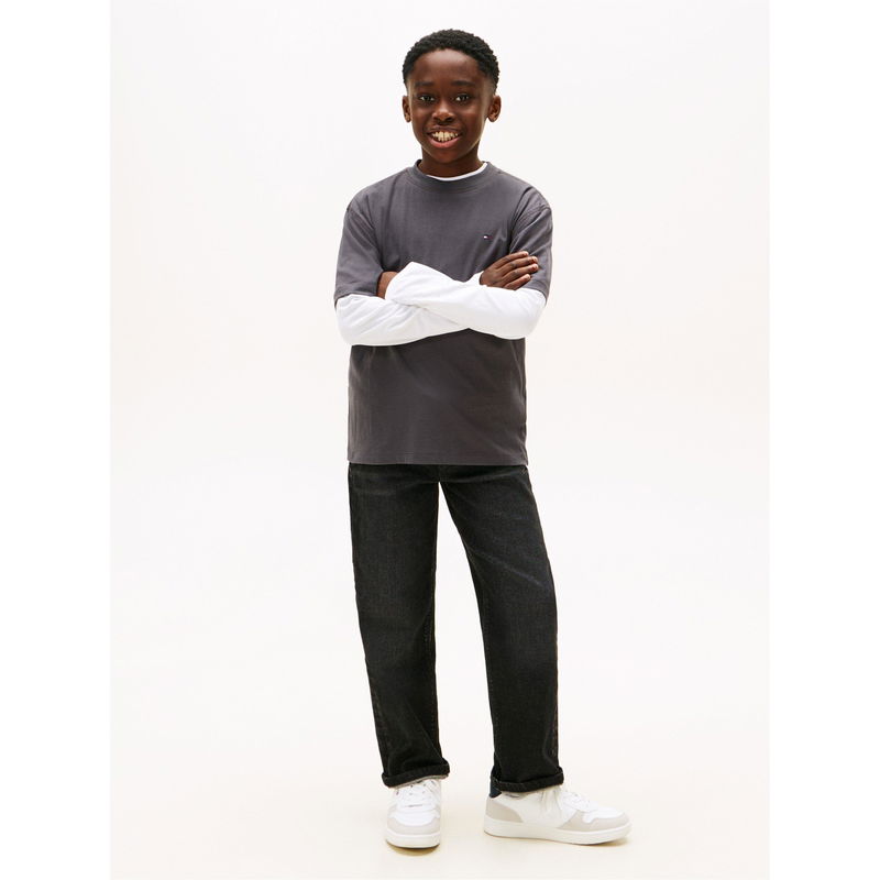 The Tommy Hilfiger Kids' Washed Graphic T-Shirt brings a laid-back vibe with its relaxed aesthetic. Designed with a regular fit, this style delivers everyday comfort that moves with ease.