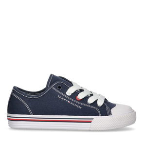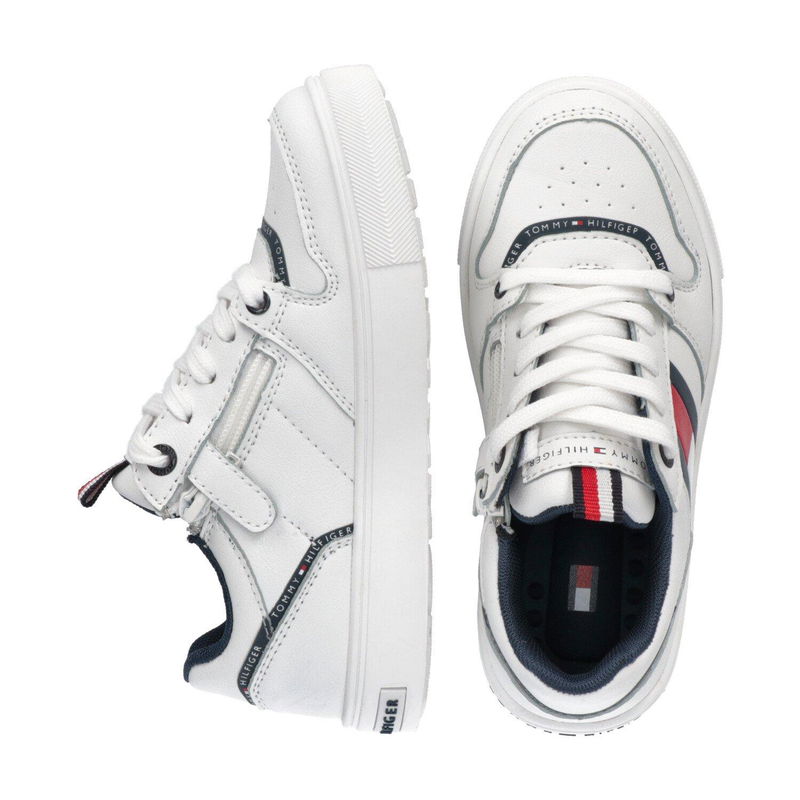 Keep your little one's casual with the Logo Flag Trainer brought to you by Tommy Hilfiger. Crafted from a durable upper construction styled in a low top silhouette, this pair feature a perforated detailing to the rounded toe, full lace fastening and zip detailing to the inner sides for an easy on/off design.
