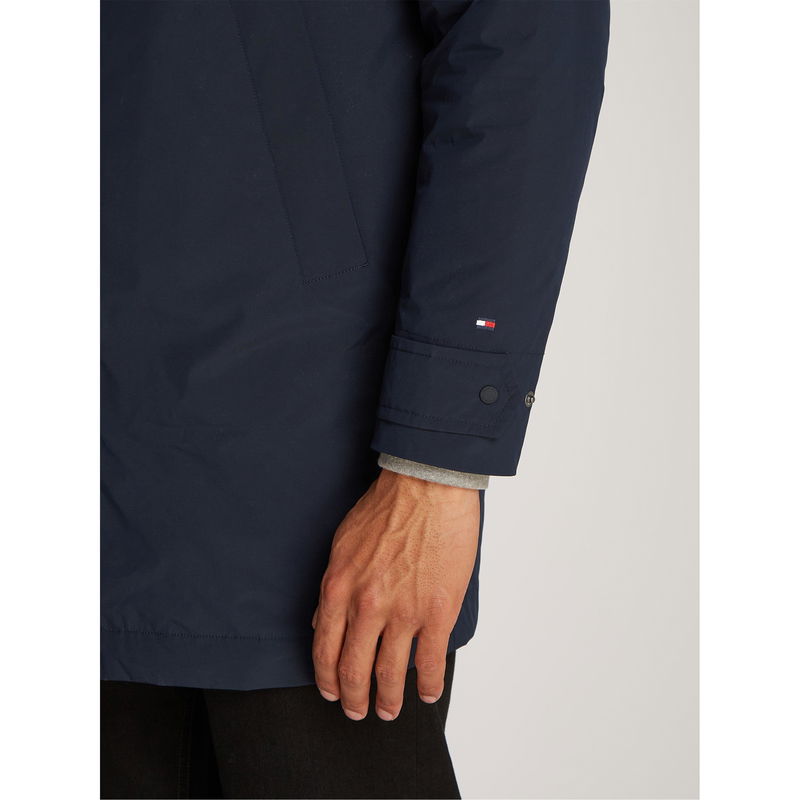 Tommy Hilfiger's Packable Water-Resistant Lightweight Trench Coat unites style with practical design. The streamlined design features an adjustable belt for a customised fit, while the water-resistant fabric keeps you protected from unexpected showers.