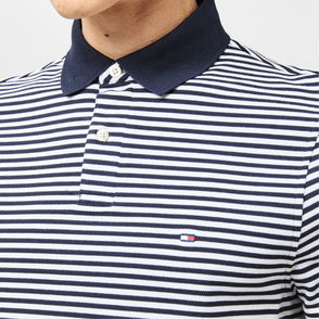 A classic cut meets brand detailing in Tommy Hilfiger's Short-Sleeve Tape Detail Polo Shirt. Tape elements accent the classic design, creating a men's polo that transitions between casual and smart-casual occasions.