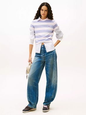 The Relaxed Barrel Jeans by Tommy Hilfiger are cut from soft cotton denim with a curved leg silhouette. Their mid-rise shape and washed finish give a modern twist to classic denim.