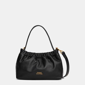 This chic bag is crafted with a luxe flat pebble-grain texture complemented by a gold-tone chain strap and TH monogram turn lock.