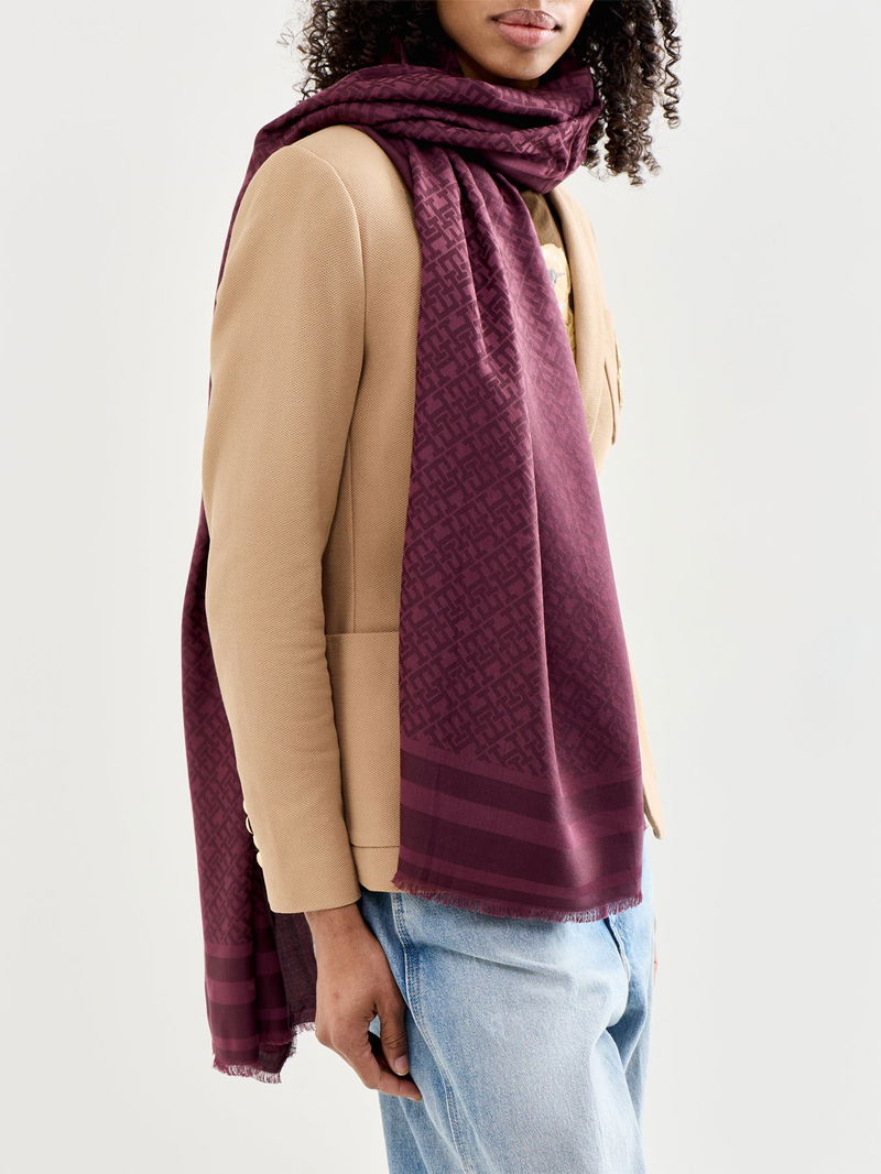 The Monogram Scarf by Tommy Hilfiger delivers classic styling with signature branding. Finished in a rich burgundy tone, it offers softness and warmth with a refined finish. A timeless accessory with everyday versatility.
