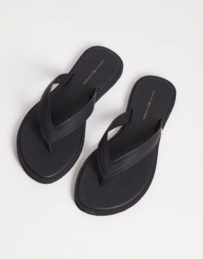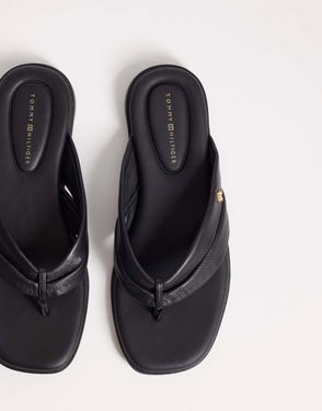 Description: Get ready for warmer days and make an impression with these slides from Tommy Hilfiger. Made from faux leather with a logo branded strap, they sit on a comfortable flat heel. Materials: Upper: polyurethanesynthetic, Sole: EVA, Lining: polyestersynthetic Product Code: 113173013