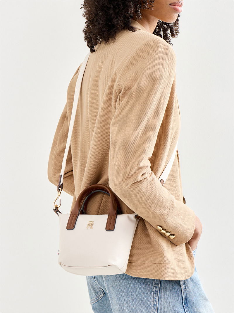 The Popette Micro Tote by Tommy Hilfiger offers a compact silhouette with contemporary simplicity. Finished in soft cream, it delivers everyday practicality with a polished finish. A modern mini tote with versatile appeal.