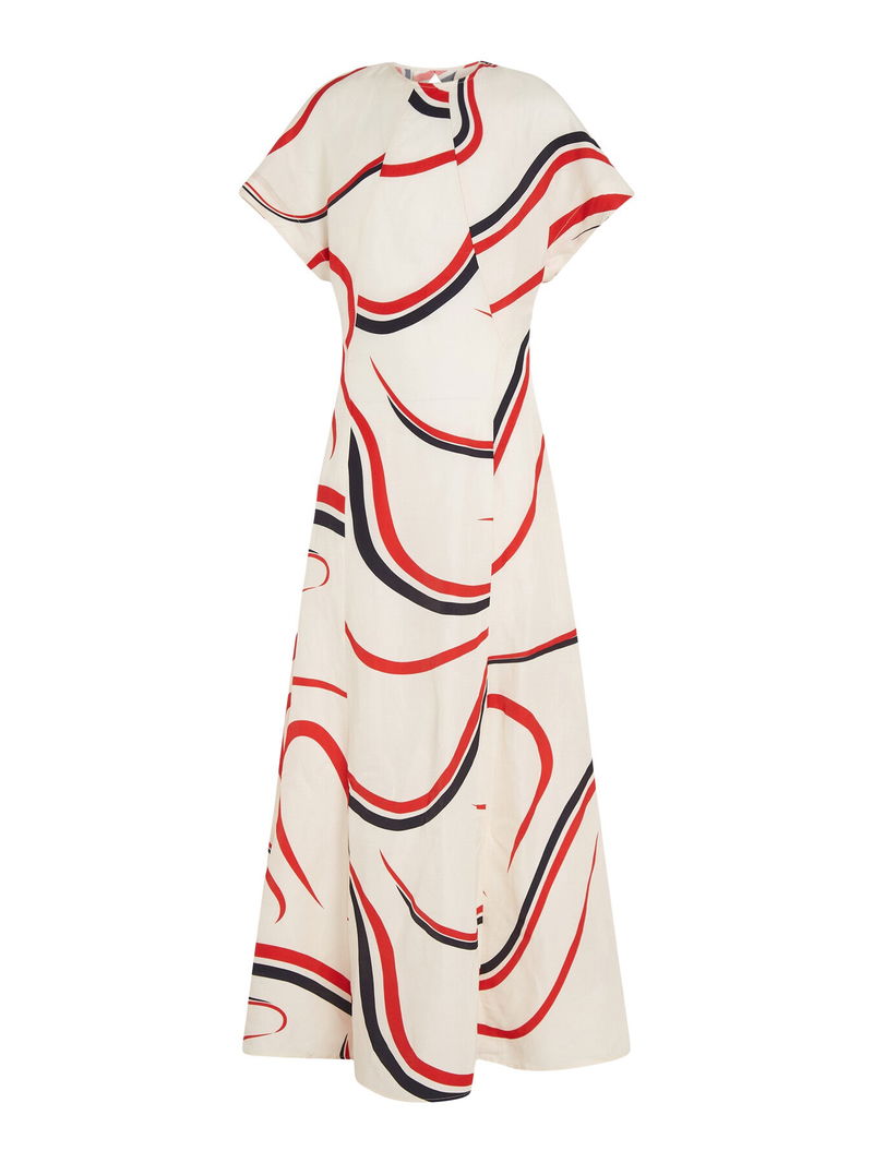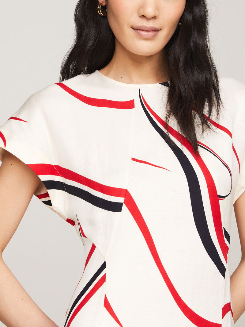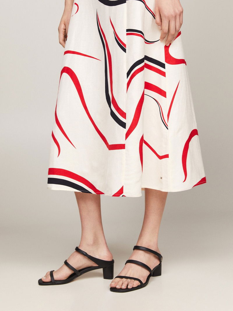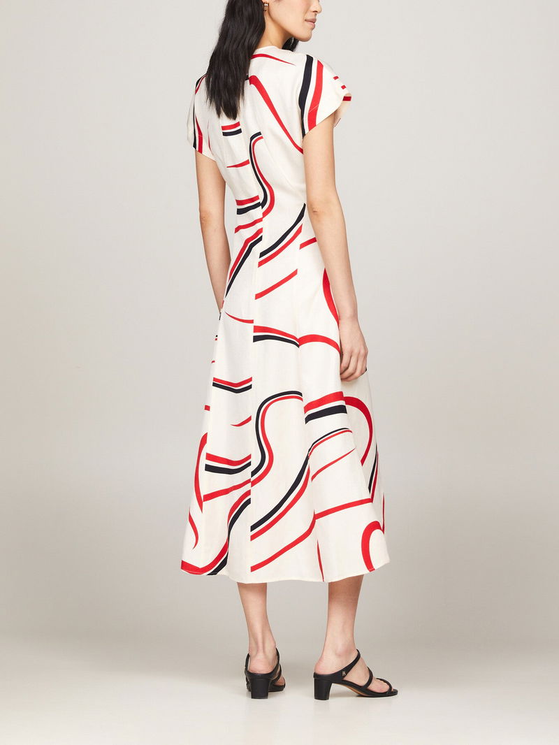 Ribbon Print Fit And Flare Midi Dress