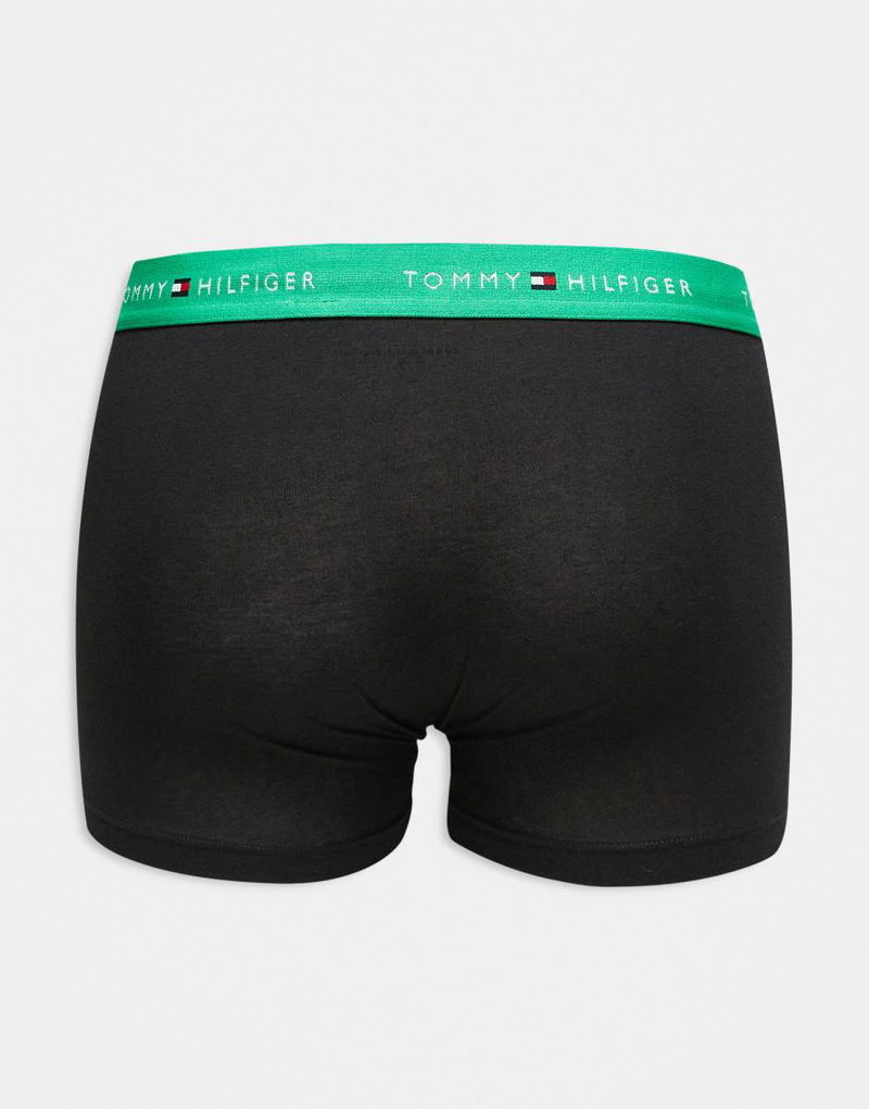 Signature Cotton Essentials 3 Pack Trunks In Black With Green Waistbands