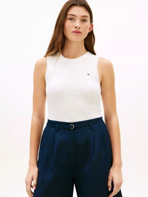 For the casual every day, this slim rib top from Tommy Hilfiger is cut with a softly rounded neckline, long sleeves and is made from a light yet durable blended fabric.