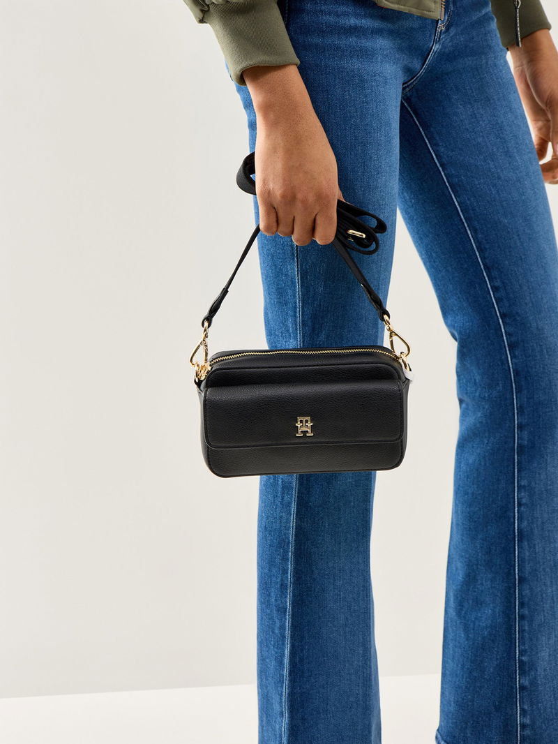The TH Distinct Camera Bag by Tommy Hilfiger features a structured silhouette with a practical zip closure. Designed in classic black, it offers everyday functionality with a clean finish. A polished staple for modern accessorising.