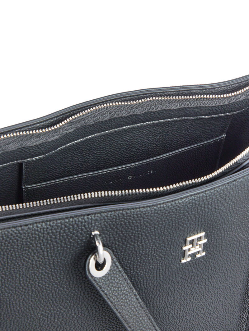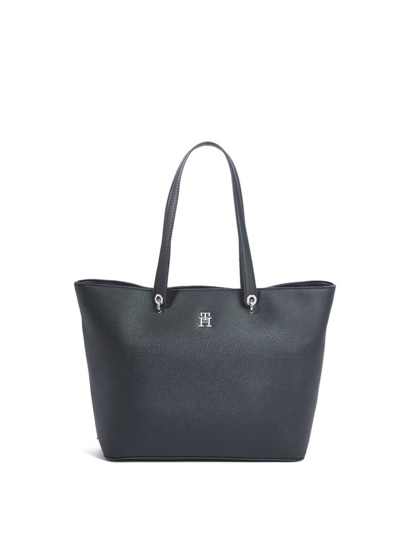 This refined tote incorporates a refined pebble grain texture and is complete with a TH monogram on the front.