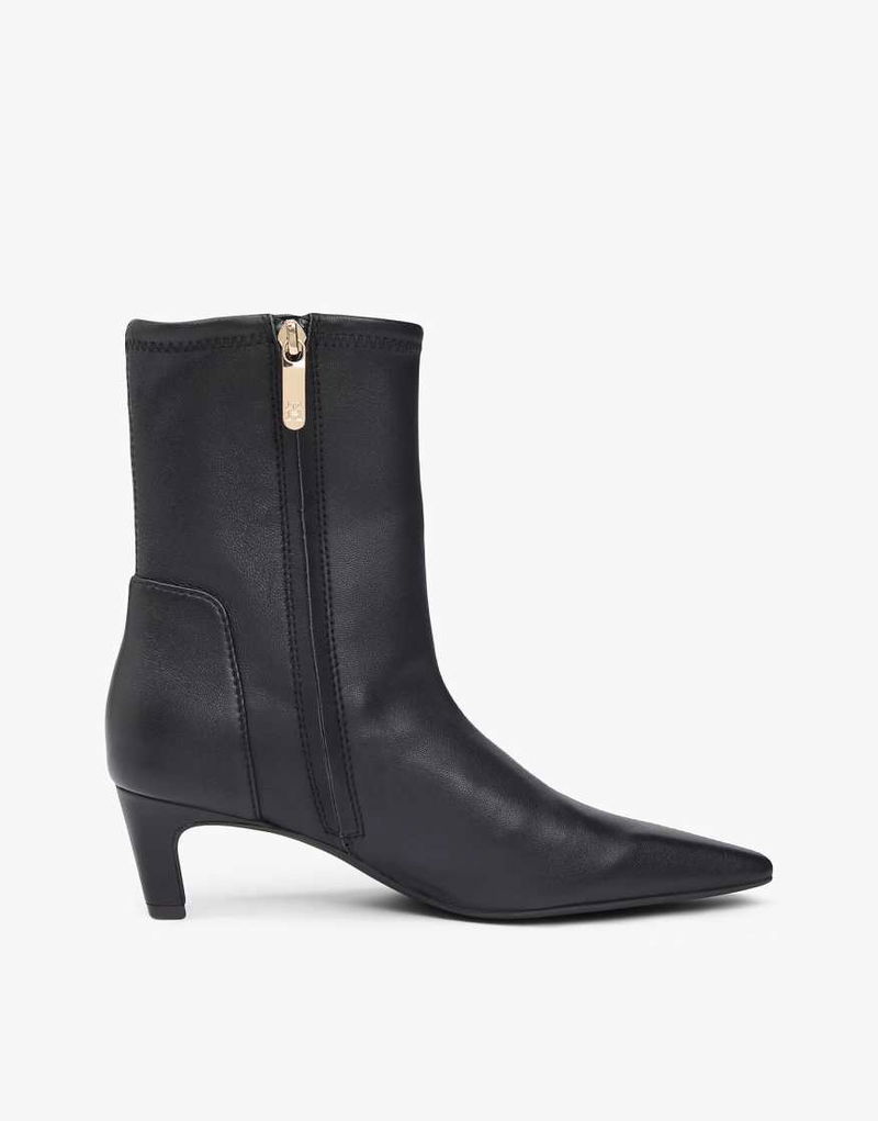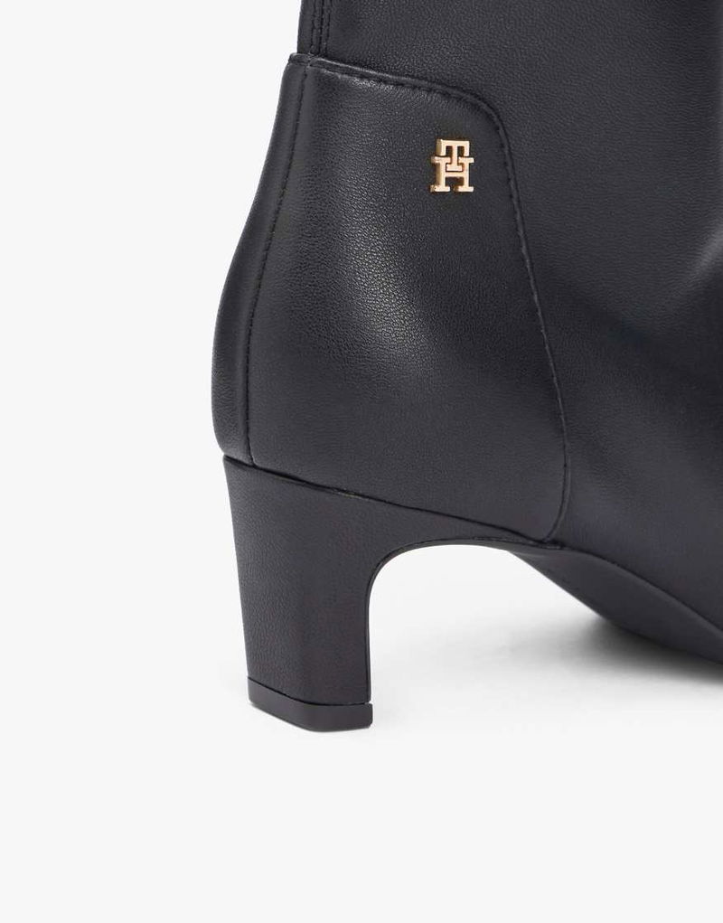 Th Monogram Plaque Leather Mid Boots In Black