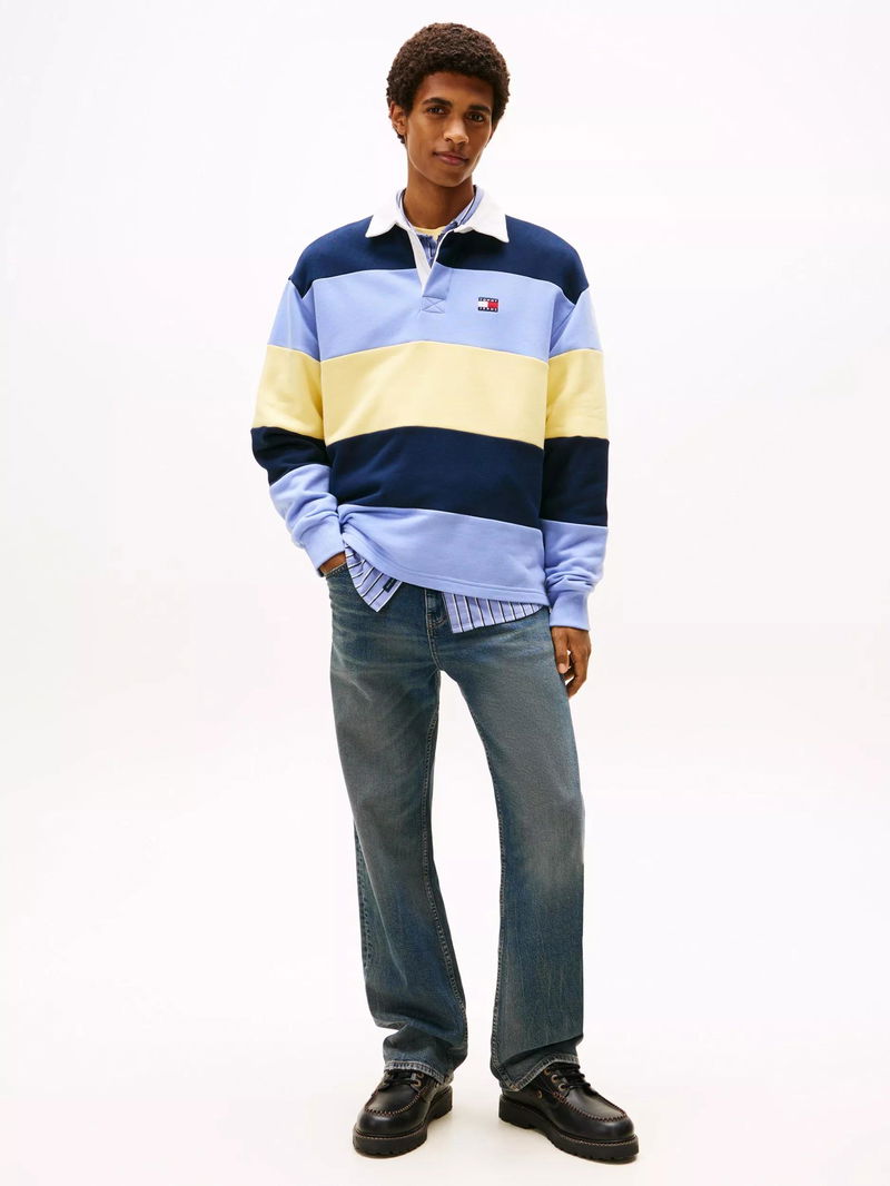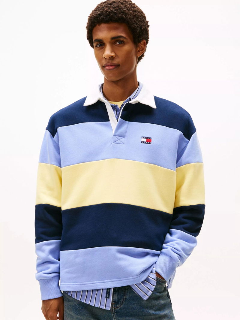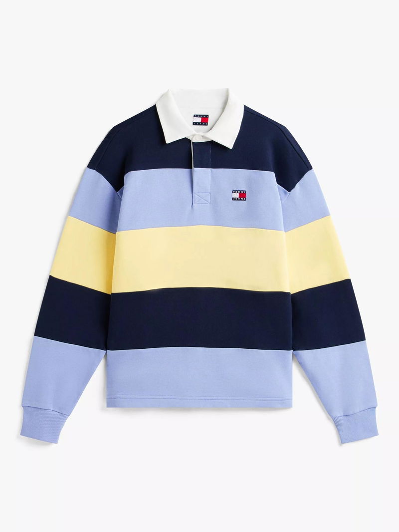 Tommy Jeans Badge Relaxed Stripe Rugby Shirt, Light Blue/Multi