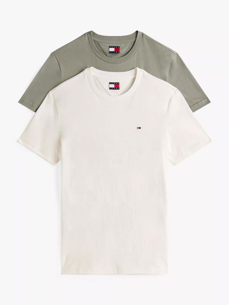 Tommy Jeans Cotton Extra-Slim Fit T- Shirt, Pack Of 2, Ecru/Utility Sage