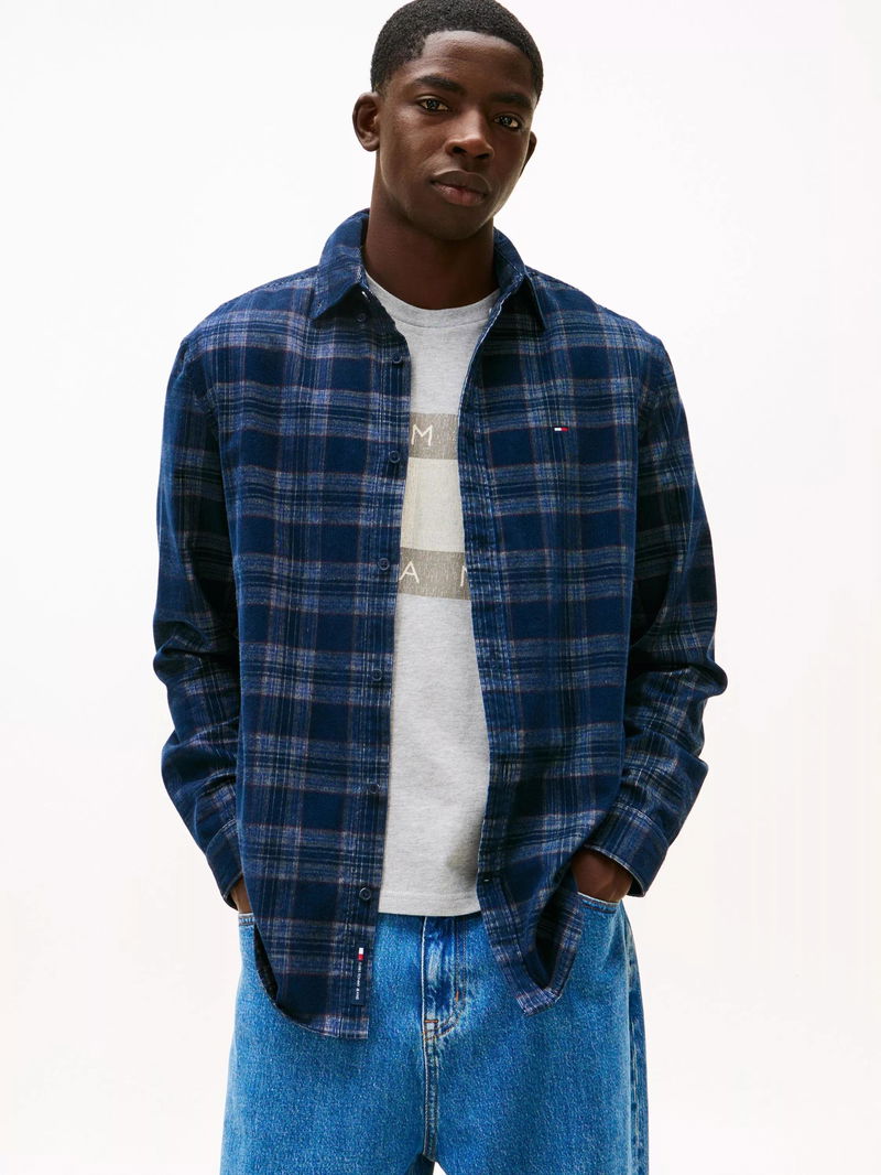 Tommy Jeans Cotton Regular Fit Check Shirt, Dark Night Navy