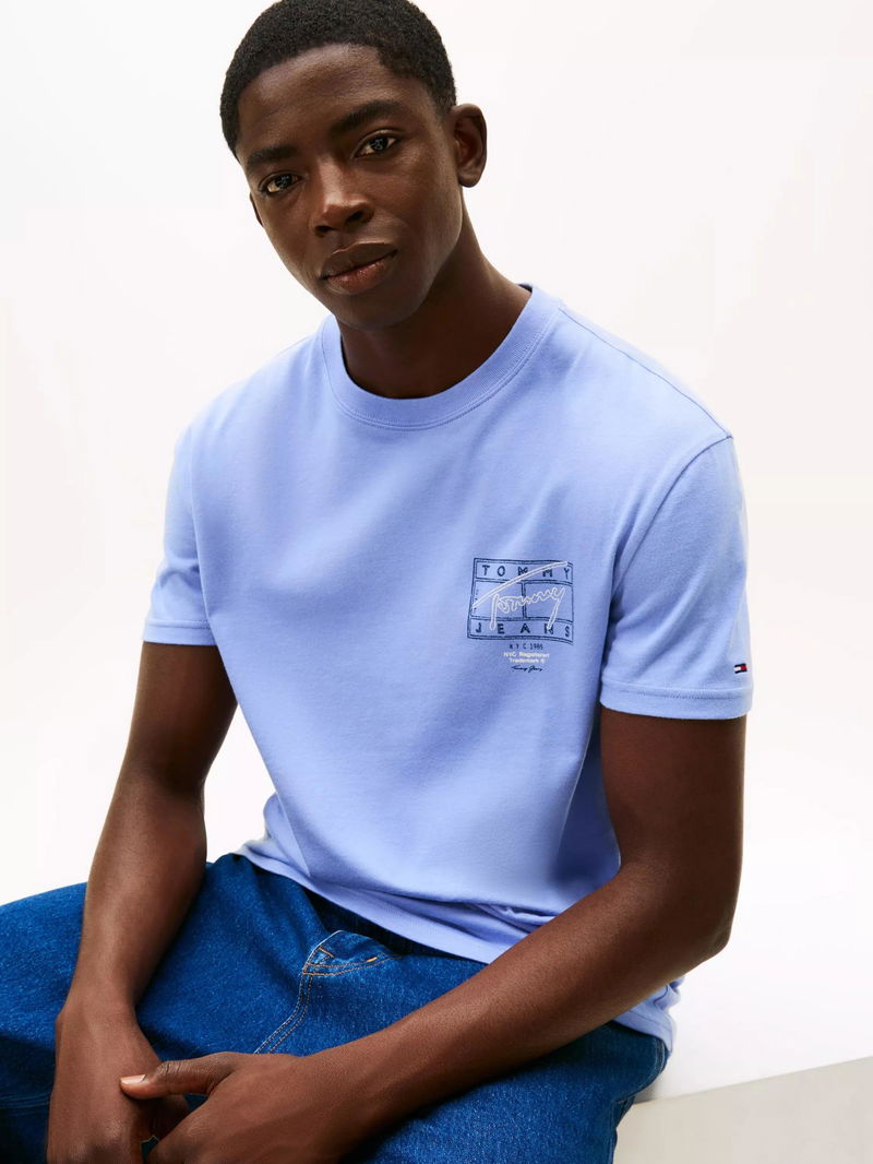 Tommy Jeans Cotton Signature Back Logo Crew Neck T-Shirt, Light Blue