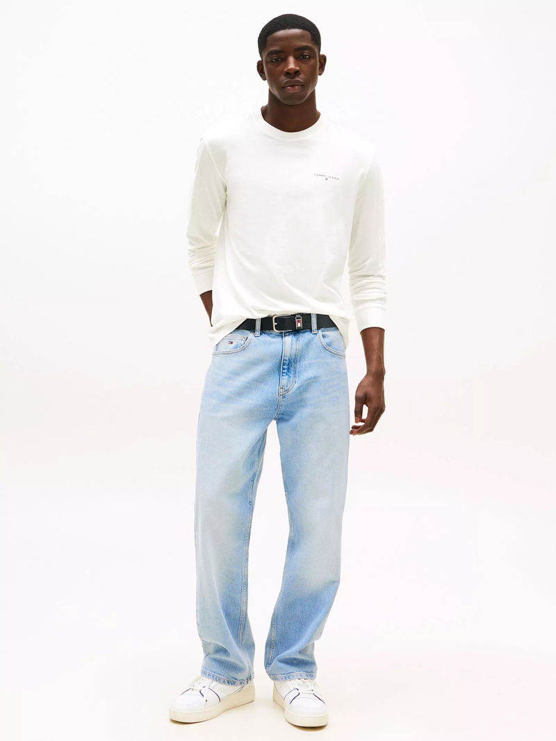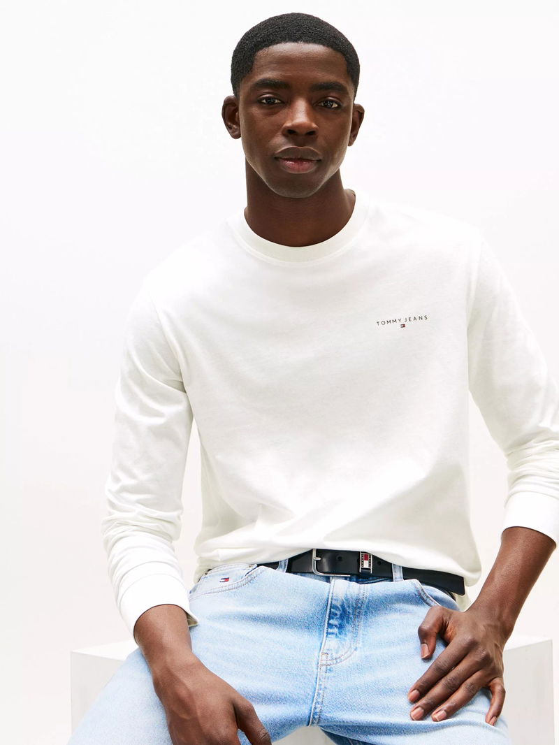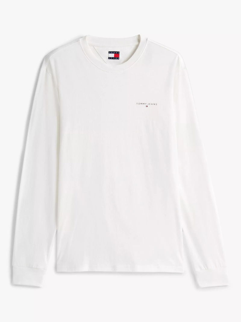 Tommy Jeans Linear Logo Slim Long Sleeve T-Shirt, Ecru