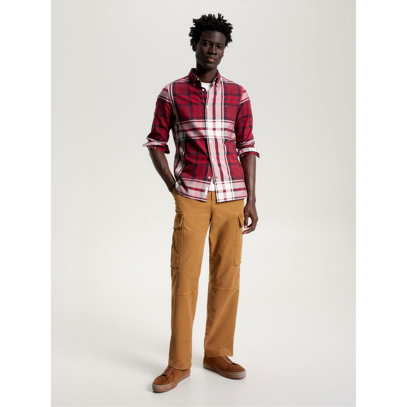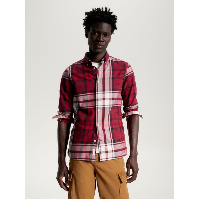 Intertwining sleek sophistication and modern style, the Tommy Tartan Oxford Shirt from Tommy Hilfiger is the perfect way to effortlessly elevate your stylish ensemble. Crafted with pure Oxford cotton, this shirt is sourced with the Better Cotton Initiative to showcase Tommy Hilfiger's commitment to sustainability. The button-down collar, button cuffs and button placket lend an air of sophistication, while the long sleeves and slim fit design add a modern touch that flatters the wearer's silhouette. Designed with an eye-catching all-over Tommy tartan pattern, it provides versatility and serves as a prominent symbol of Tommy Hilfiger's rich heritage and timeless elegance. To complete the design, the iconic Tommy Hilfiger embroidered flag on the chest showcases the brand's meticulous attention to detail and impeccable craftsmanship. Whether it's a day out with friends or a formal event, this shirt is perfect for any occasion.