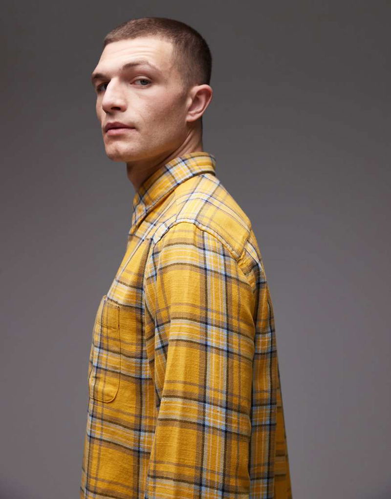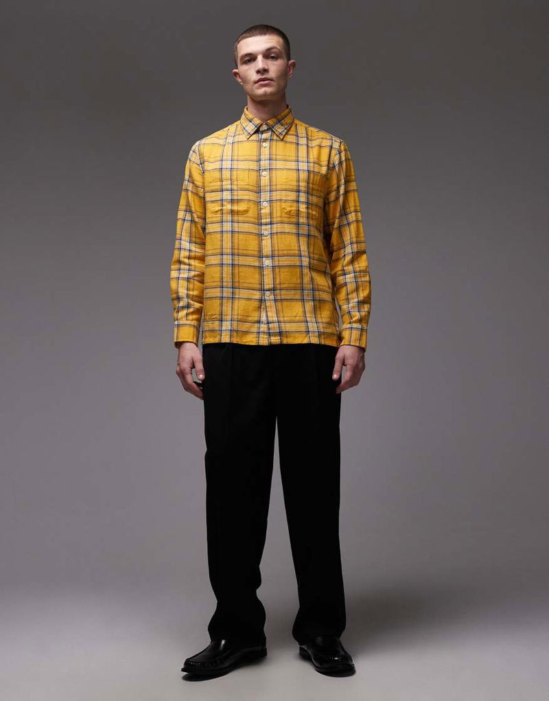 Twill Check Relaxed Long Sleeve Shirt In Yellow