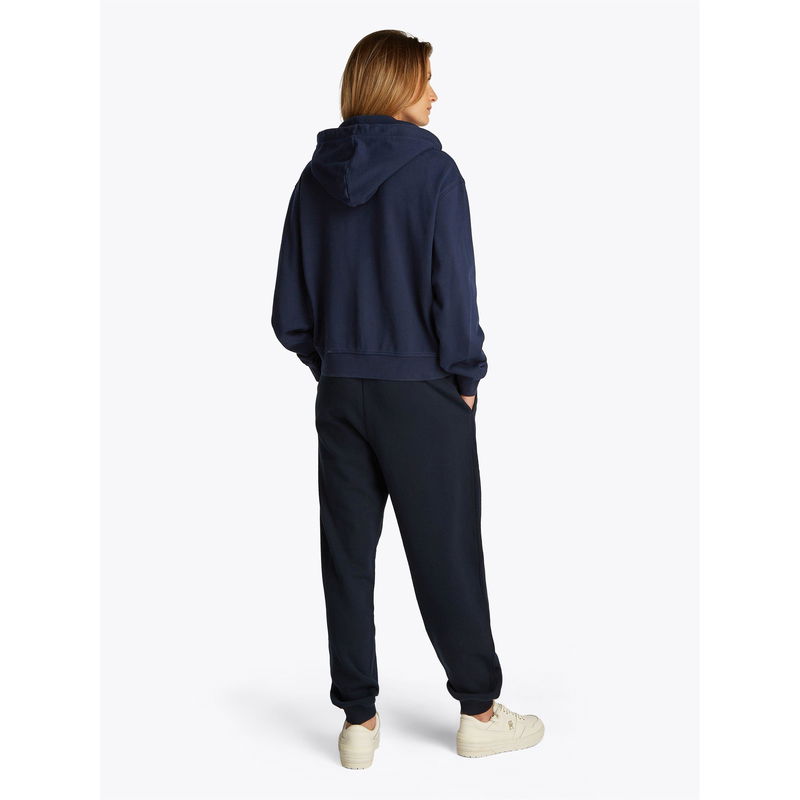 Tommy Hilfiger's Regular Script Zip Hoodie features classic athletic sweatshirt styling and branding for an easy everyday layer. This relaxed design has a full-zip front for easy on-and-off and temperature control, making it an ideal lightweight jacket.