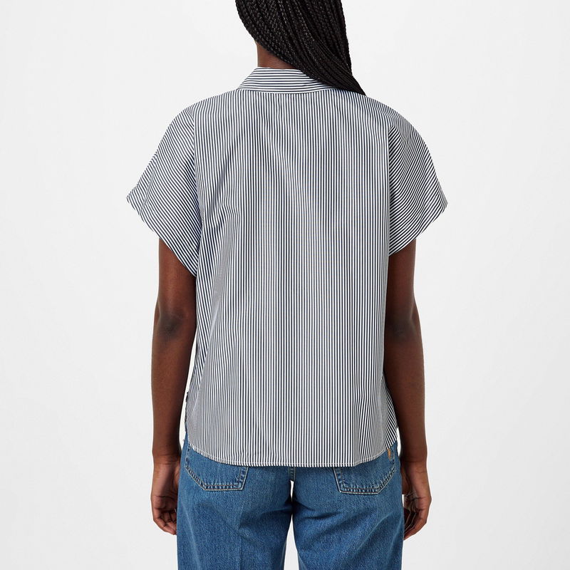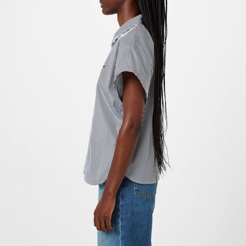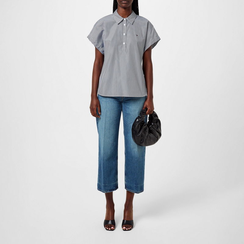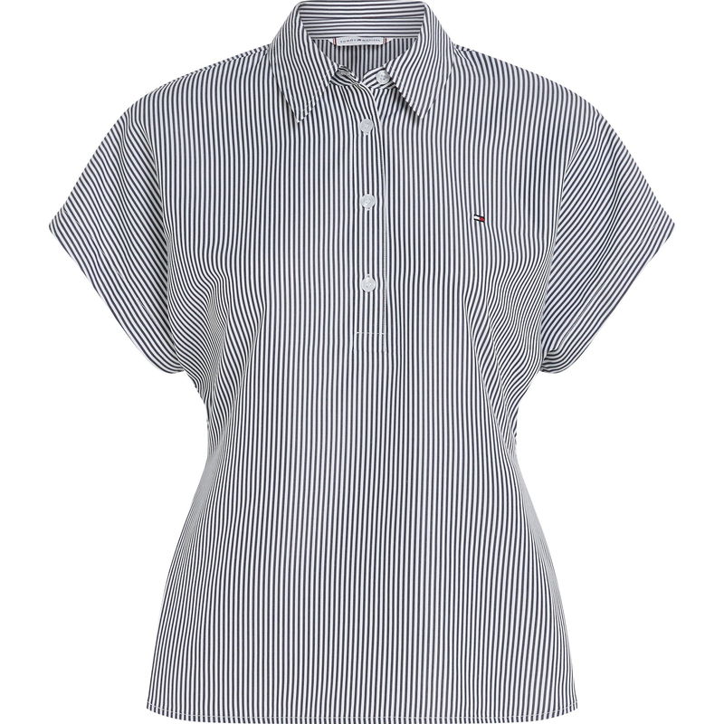 Tommy Hilfiger's Women's Stripe Short-Sleeve Blouse delivers style with crisp striped patterning and a lightweight feel. The clean design features structured collar detailing and a tailored cut that flatters the feminine form.