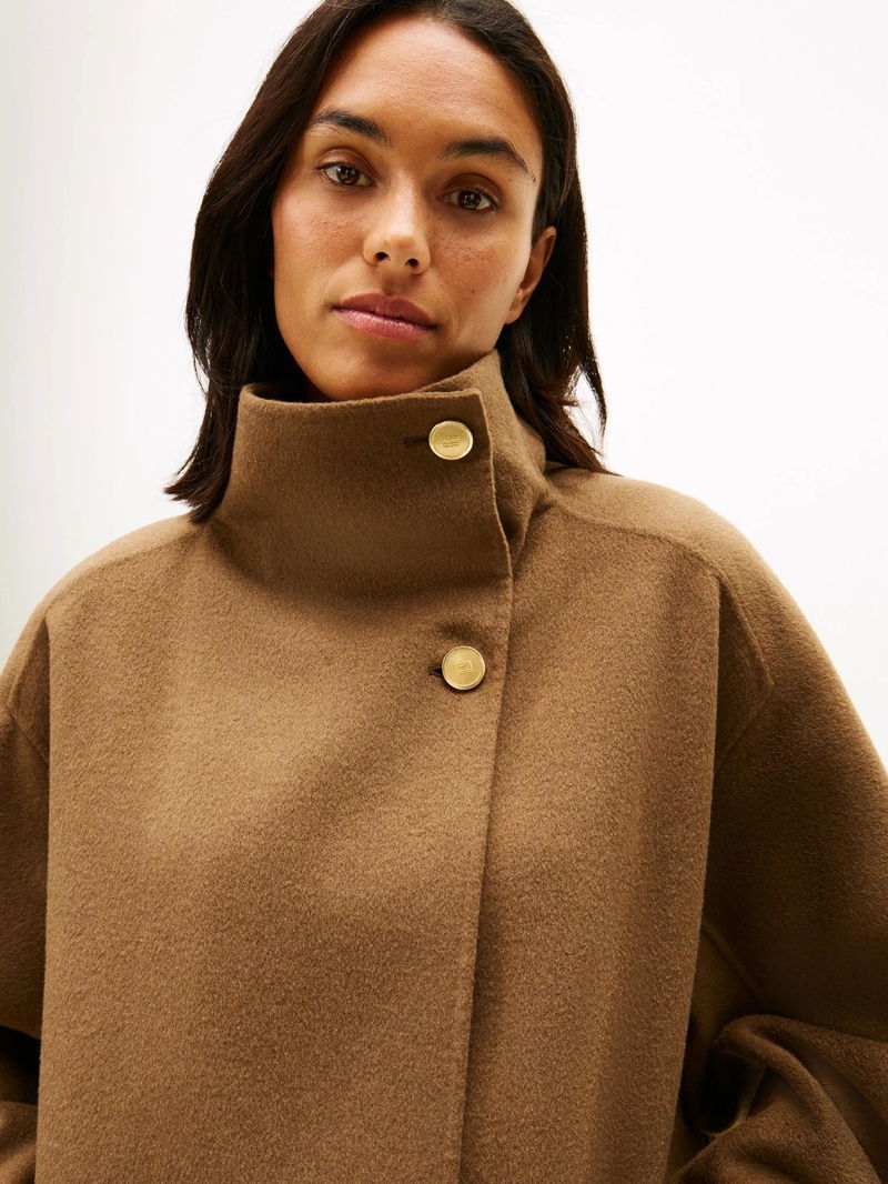 Wool Blend Funnel Neck Coat, Nordic Taupe