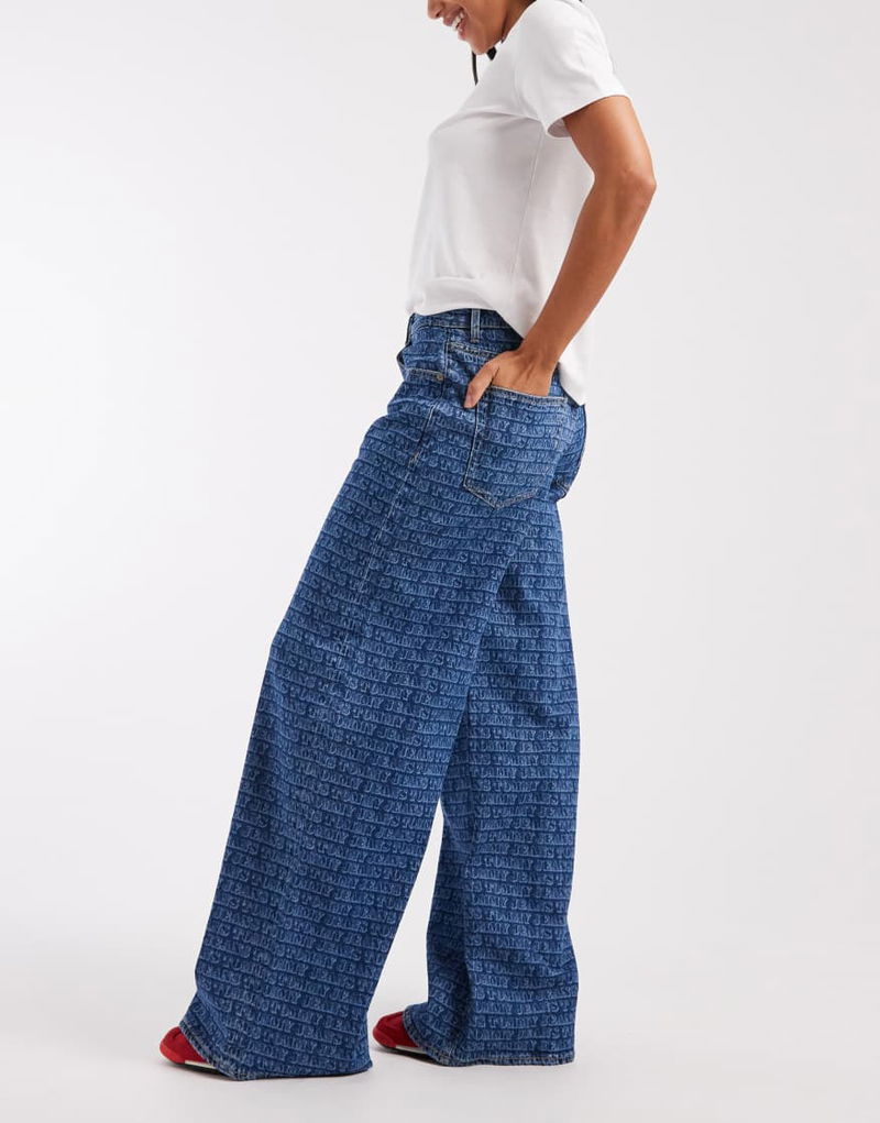 Charlie Loose Jeans With All Over Logo Print In Mid Wash