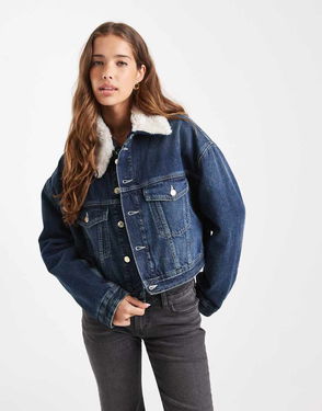 Mid-season layering Spread collar Button placket Chest pockets Cropped length Regular fit.
