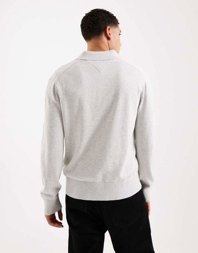 Essential Knitted Long Sleeve Polo Shirt In Grey